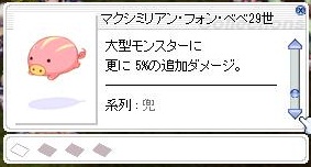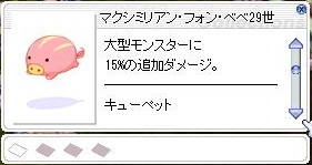②べべ29世を装備(大型モンスターに+15%追加ダメージ)
